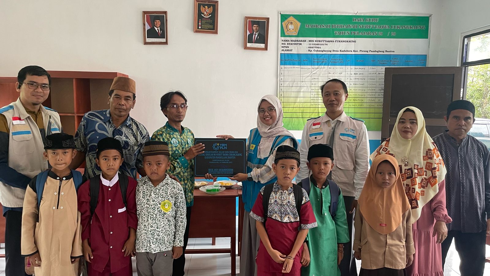 PANDEGLANG – PT PLN (Persero) Unit Induk Distribusi (UID) Banten melalui Yayasan Baitul Maal (YBM) PLN meresmikan pembangunan gedung baru Madrasah Ibtidaiyah (MI) Nurut Takwa di Kampung Cukang Kaung, Desa Kadubera, Kecamatan Picung, Kabupaten Pandeglang, Banten, Kamis (18/2/2025).