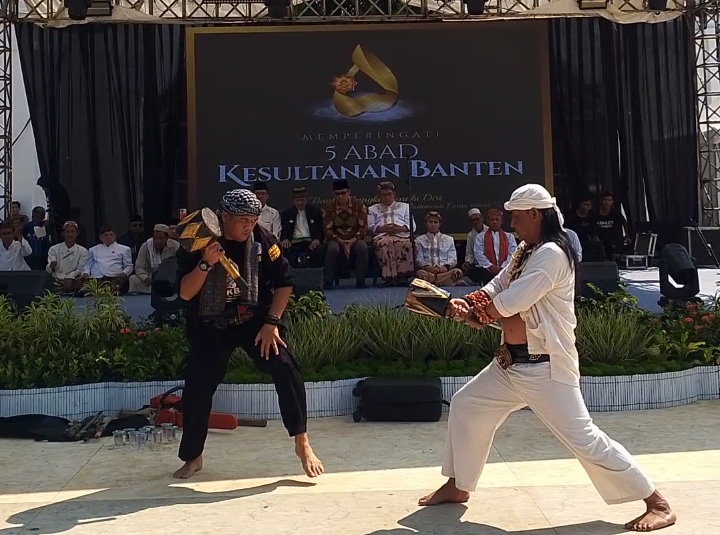 SERANG – Pendekar di Tanah Jawara memeriahkan peringatan 500 tahun Kesultanan Banten di Kompleks Banten Lama, Kota Serang. Aksi para pendekar tersebut menjadi pusat perhatian masyarakat yang hadir.